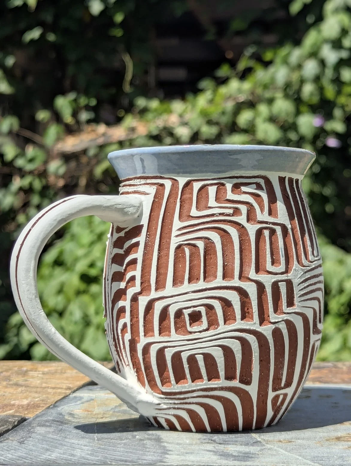 A mug that feels both earthy and refined—contrasting tones, tactile texture, and unmistakably human craftsmanship. Subtle variations in line weight, spacing, and composition give each piece its own personality. Designed to be held, used, and appreciated daily, it’s as much a functional object as it is a small, one-of-a-kind work of art by Asa Maestas.
