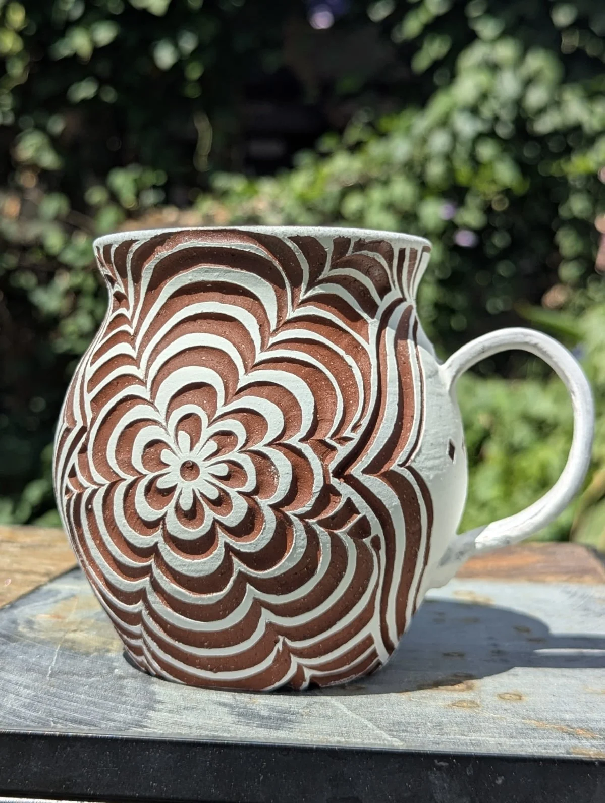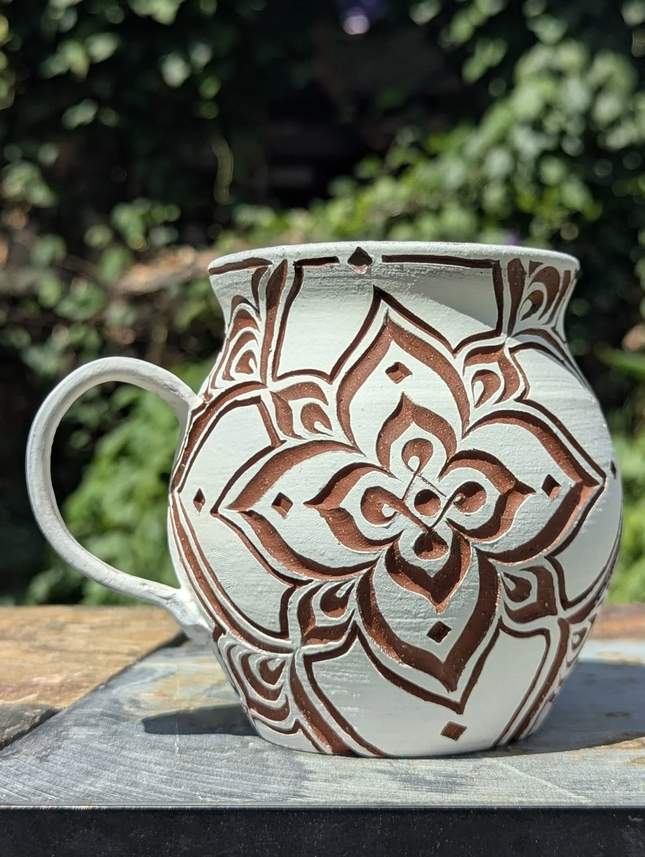 A mug that feels both earthy and refined—contrasting tones, tactile texture, and unmistakably human craftsmanship. Subtle variations in line weight, spacing, and composition give each piece its own personality. Designed to be held, used, and appreciated daily, it’s as much a functional object as it is a small, one-of-a-kind work of art by Asa Maestas.